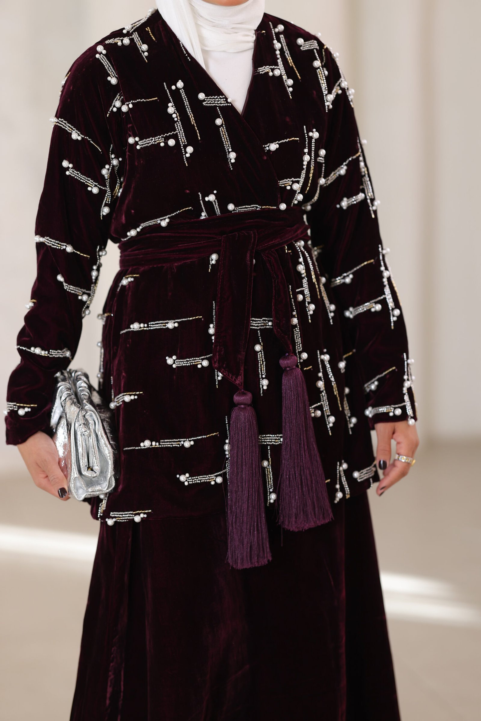 القماش راقي جدا مخمل حرير مشكوك ب لولو و خرز راقي